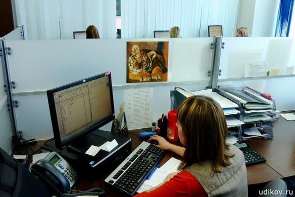 В отделе по «обработке проблем», увидев нас, сотрудницы как будто немного напугались, но были очень дружелюбны. Кстати, классный тигра на перегородке, согласны? )