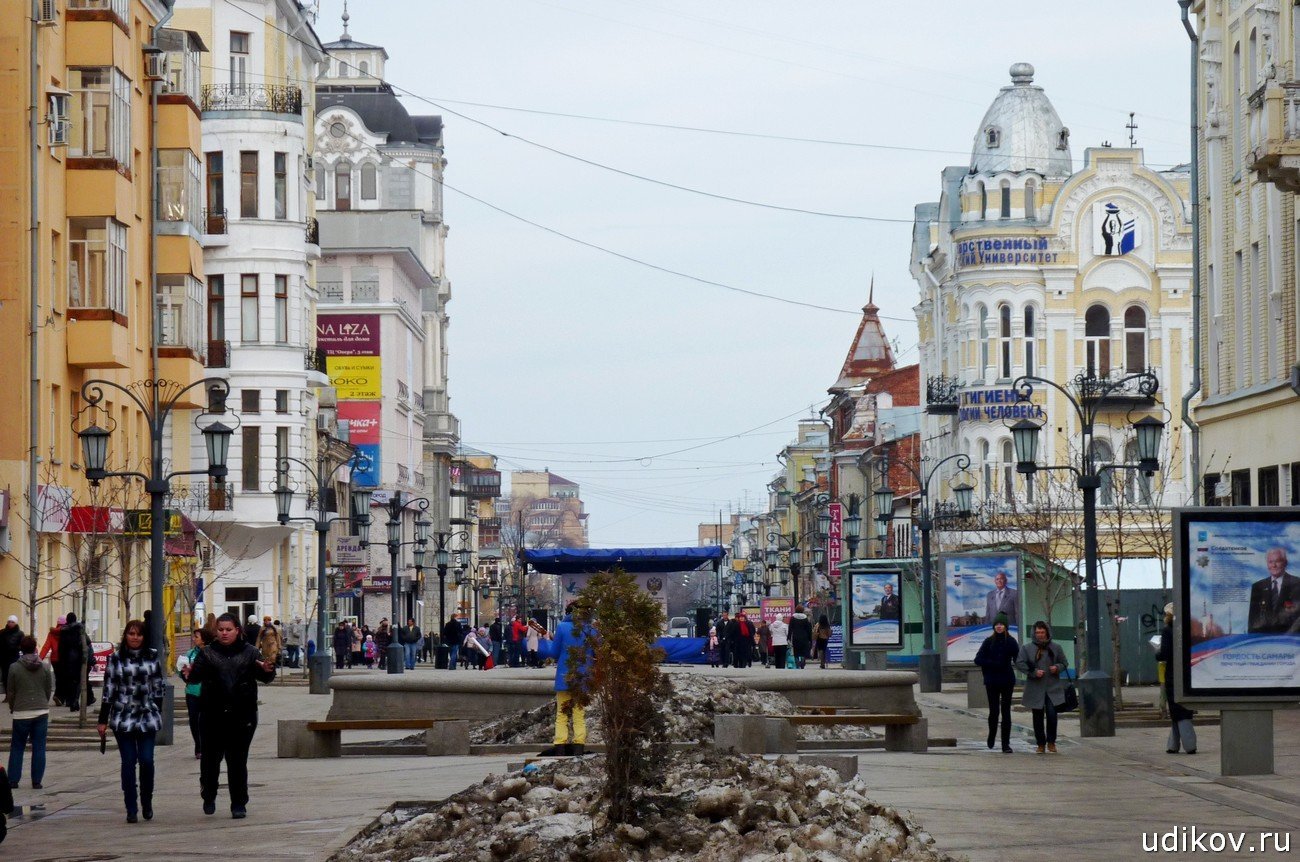 На ней много интересных домов и, видимо, это одно из основных мест тусовок самарской молодёжи. Здесь мы встретили каких-то бешено-активных детей, скандирующих «Россия, Казань, Универсиада». Наверняка какая-нить молодёжная инициативная группа в духе нашистов. Короче, оптимизм без страха и упрёка…