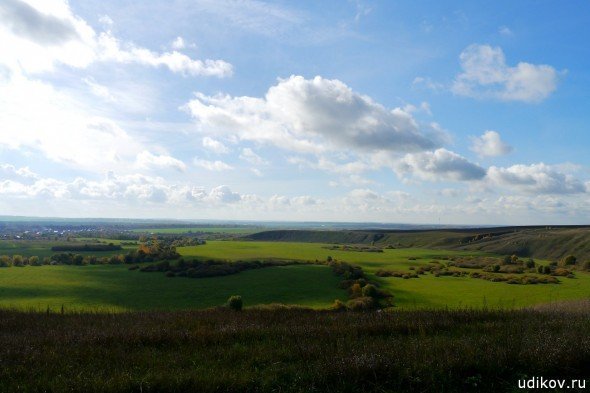 Виды открываются потрясные. Вся долина внизу как в огромной чашке. Коричневая «подкова» внизу — высохшее старое русло Казанки. Во время дождей оно наполняется водой.