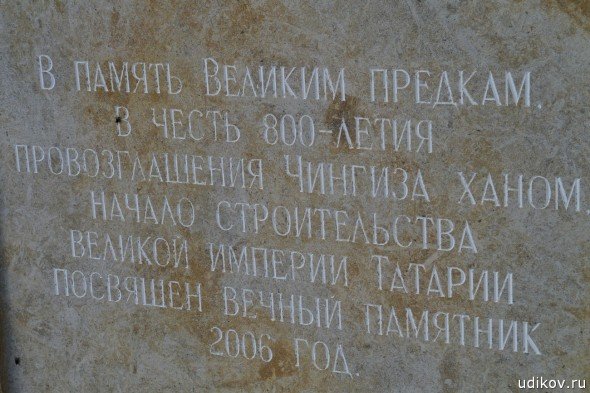 У входа в городище видим небольшую слеллу. От неё здорово отражаются все звуки и, по словам людей, здесь неоднократно бывавших, над ней всегда островок чистого неба. Надпись на ней, однако, вызывает несколько противоречивые чувства. И вопрос — что ж такое выкурил, съел или выпил автор? Кажется, тут никак не обошлось без каких-нибудь волшебных древнебулгарских снадобий.