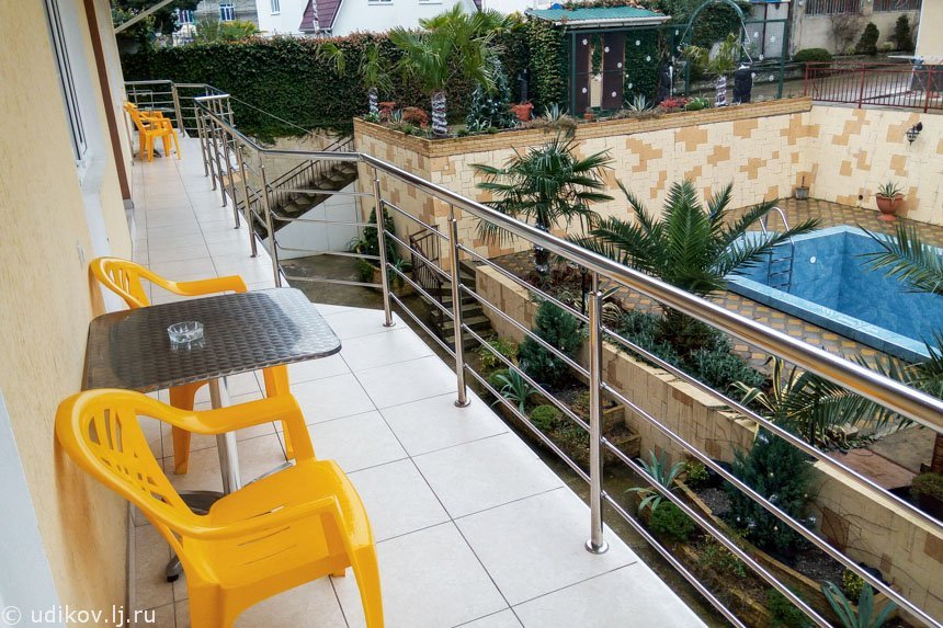 Какой у нас стереотип в отношении владельцев сочинских гостевых домов? Что они живут за счёт летнего сезона, дерут с туристов в три шкуры, а месяцев на 7 закрывают гостевой дом и ничего не делают. Так вот, хозяева «Планеты МОВ» — это совсем другой случай. Семья из Еревана (МОВ — одновременно инициалы главы семейства и аббревиатура из имен сыновей) перебралась в Сочи в 90-х годах. Сначала глава семейства, а потом и вся семья. Вардан — ювелир, его супруга, Наира — врач, сын Ованесс, с которым я общался — глава студии, занимающейся веб-дизайном и разработкой мобильных приложений. А гостевой дом — это дело жизни, бизнес, который кормит, их собственный дом, совмещенный с четырехэтажным гостевым корпусом оригинальной планировки — здесь нет длинных гостиничных коридоров, в каждом номере есть кухня, и каждая розетка расположена там, где надо. Всё здесь продумано до мелочей, удобно и функционально, но при этом лишено внешнего пафоса и глянца. Летом работает бассейн, окруженный прекрасной южной зеленью. А новогодние украшения двора и вовсе напоминают рождественское убранство православных храмов. Учитывая радушие хозяев, чистоту, достаточно удобное расположение и демократичные цены, становится понятным, как складывался рекордный для гостевых домов рейтинг на букинге — 9.1.