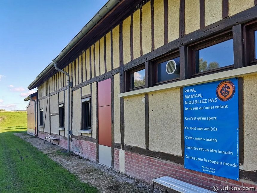 Здание культурно-спортивного центра коммуны Les Islettes показалось мне очень интересным. Это старинный домик с черепичной крышей, прокачавшийся современными пристройками. Внутри всё в скандинавском стиле. Очень лаконично, миленько и стильно. Здание можно использовать для проведения самых разных мероприятий. На потолке висят проекторы, есть вполне профессиональная кухня. На складе много раскладных столов, стульев, вокруг множество футбольных полей. Это прекрасный образец небольшого многофункционального центра, который меня очень впечатлил.