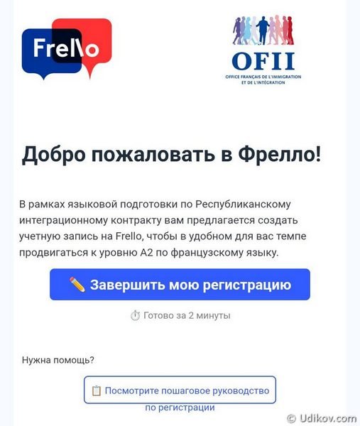 Начал изучать язык ещё по одному приложению — Frello. В принципе, Duolingo меня вполне устраивал. Но, если я правильно понимаю, Frello — это и есть те самые онлайн-курсы от OFII. Так что теперь, видимо, переключусь на Frello. Заниматься нужно будет много, иначе назначенные мне 400 часов я буду проходить годами.
