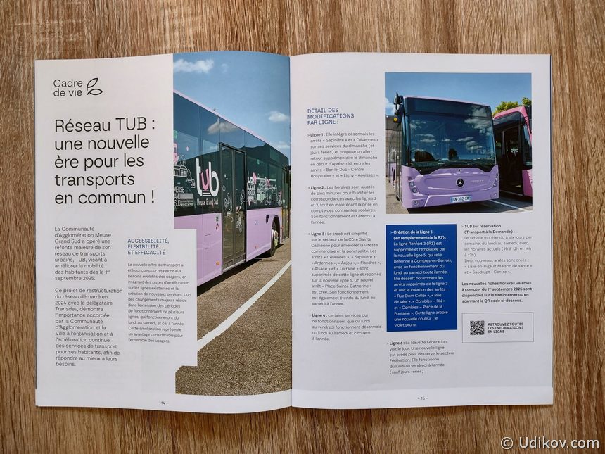 Городское сообщество Мёз-Гран-Сюд провело масштабную реконструкцию своей городской транспортной сети TUB, направленную на повышение мобильности жителей с 1 сентября 2025 года.»