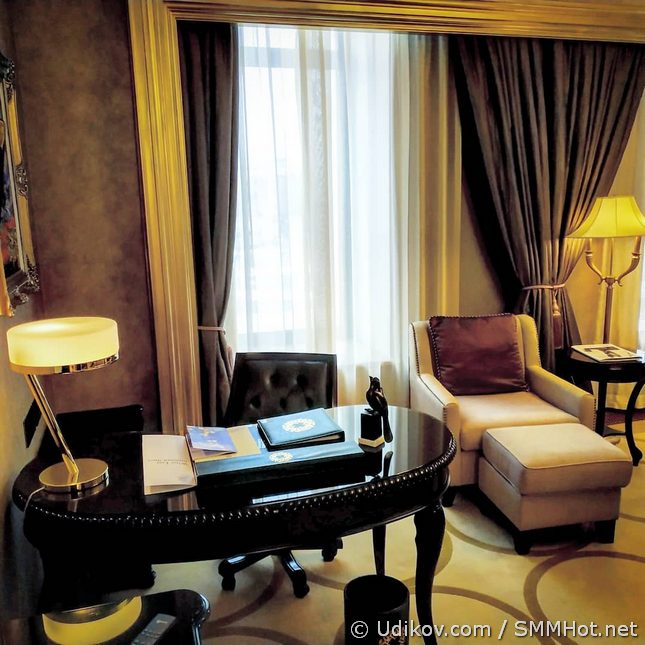Сам отель впечатляет. И да — у меня здесь личный дворецкий. Естественно, сервис на очень высоком уровне. И всё как-то ну очень респектабельно. С чем я могу сравнивать этот отель? Наверное, с питерской «Асторией». Хотя там, конечно, совсем другая история. Но ощущения от самого отеля, как ни странно, похожие.