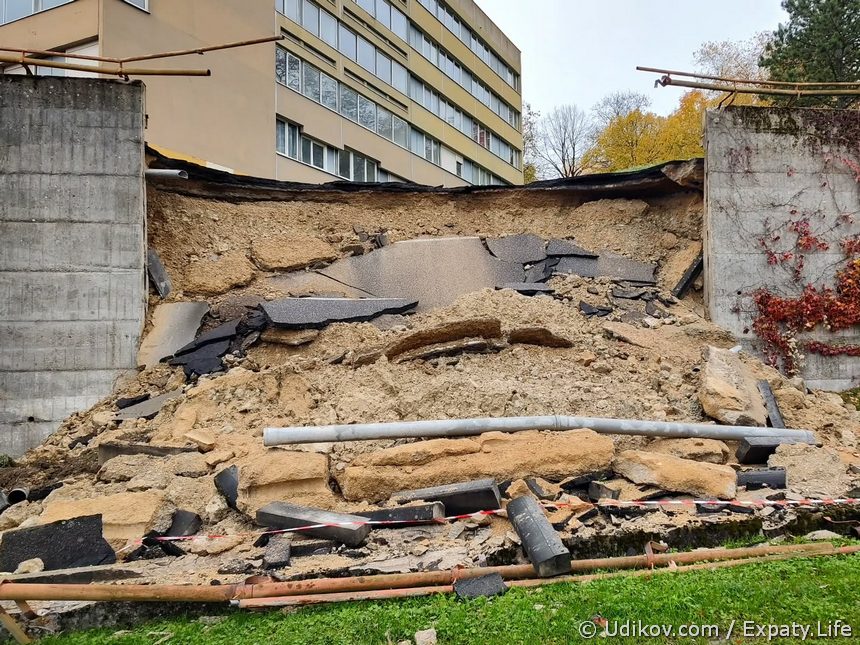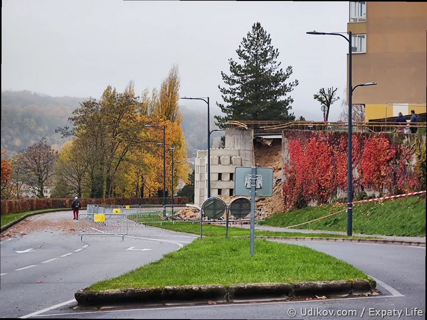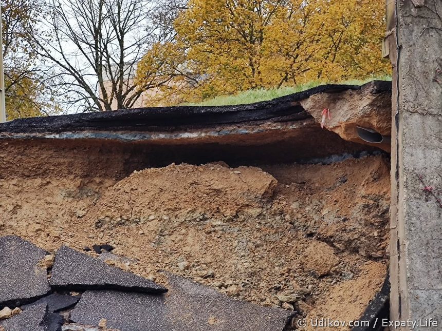 На днях я побродил возле эвакуированных из-за обрушения подпорной стенки домов. Там и раньше было довольно печально, а сейчас, без людей, стало совсем безрадостно. Стена продолжает разрушаться, дорога перекрыта, машины и автобусы ездят в объезд. Природа забирает своё. Похоже, история многоквартирных домов в этом квартале подходит к своему финалу. Грустно. Ведь всё могло быть иначе.