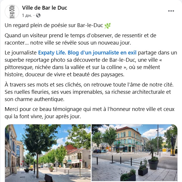 И мне очень странно видеть под моими фотографиями города комментарии о том, что мне за эти посты заплатил мэр или ещё кто-то. Особенно при том, что в своей стране я был в резкой оппозиции к местной власти. А действия ряда должностных лиц в Bar-le-Duc считаю банальной показухой.