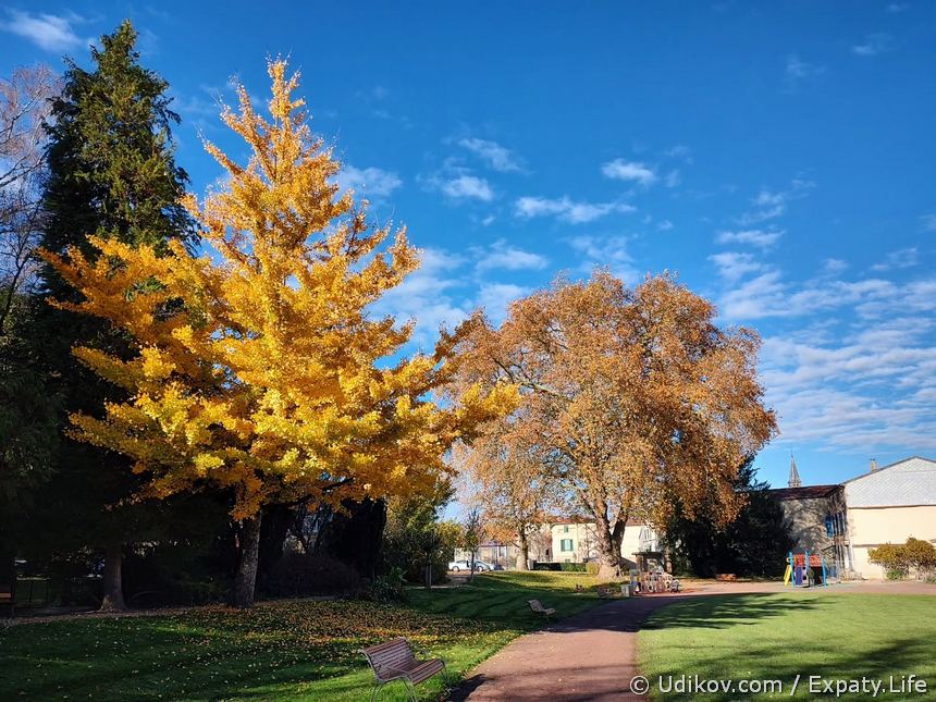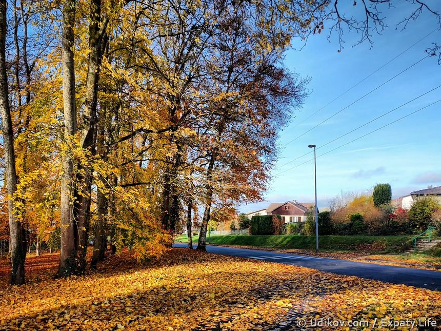 Осень постепенно сбрасывает своё одеяло из листьев. Но делает она это медленно и степенно, смакуя и растягивая удовольствие. И это очень красиво. В местах, откуда мы родом, осень стремительна. В это время на моей малой родине деревья уже стоят без листьев, а температура по ночам может опускаться ниже нуля. Тем больше я ценю прекрасную осень Мёза и мягкий климат Франции.
