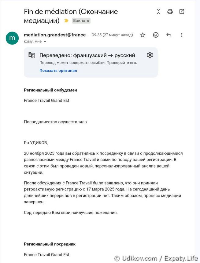 Как показывает практика, если знать и понимать бюрократические процедуры, во Франции вполне есть шанс добиться справедливости. Наглядный тому пример — сохранение даты моей регистрации в France Travail. Эта дата у меня слетала аж дважды. При этом от неё многое зависит. Сначала это произошло в июне. Тогда я получил бумажное письмо о необходимости актуализации данных уже после того, как моя регистрация была отозвана.