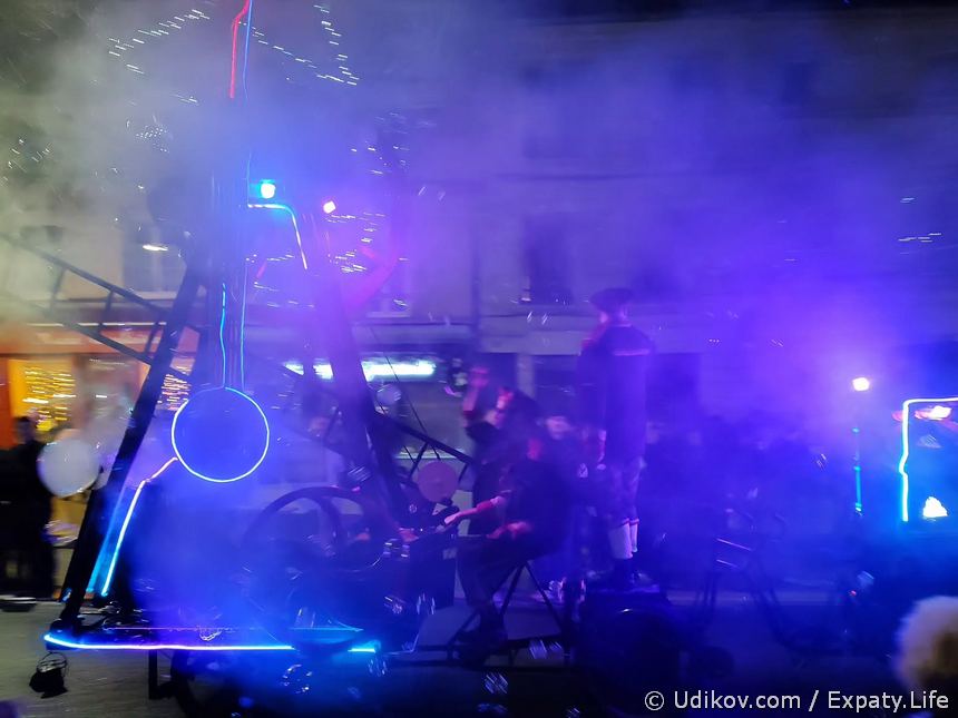 Отмечу, что мероприятие оказалось куда интереснее, чем я ожидал. Особенно меня впечатлили огромные велосипеды с барабанами, музыкантами и уютными абажурами. Всё это несколько киберпанковое, в стиле «Безумного Макса». Это первый наш такой парад, так как год назад мы жили в совсем глухой провинции.