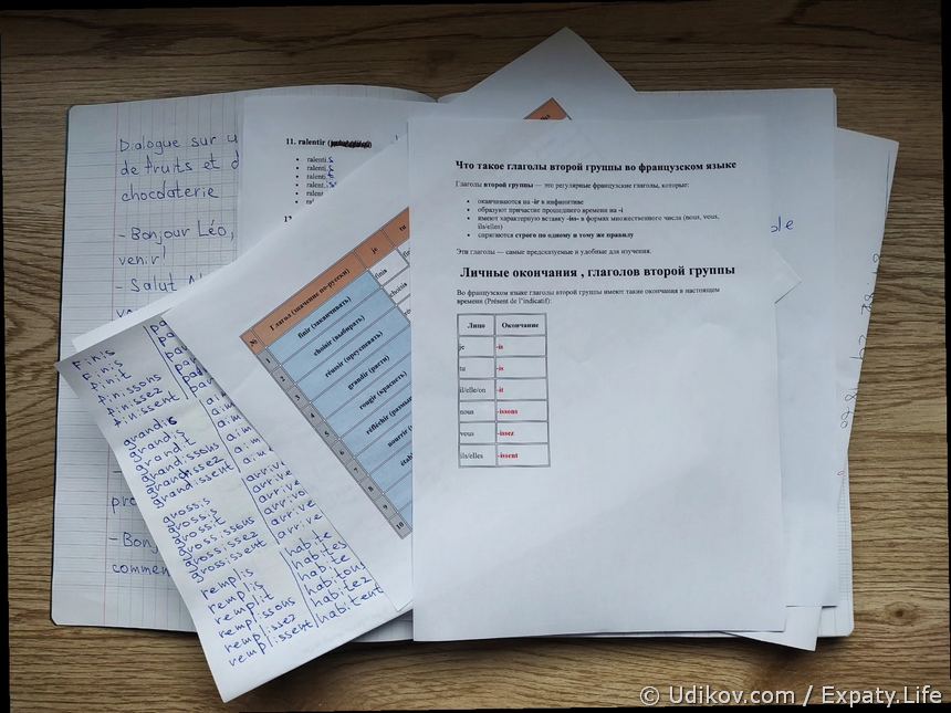 Лично мне больше всего помогают индивидуальные занятия с преподавателем. Они начались недавно. До этого были лишь групповые курсы. Очень много разных курсов в разных городах, где мы жили. Результат был так себе. Но, наверное, дело здесь во мне самом. Нужно было много заниматься. Но так поначалу у меня не было уверенности в том, что мы сможем остаться во Франции, я не могу найти в себе силы для полноценного изучения языка. Всё изменило получение легального статуса.