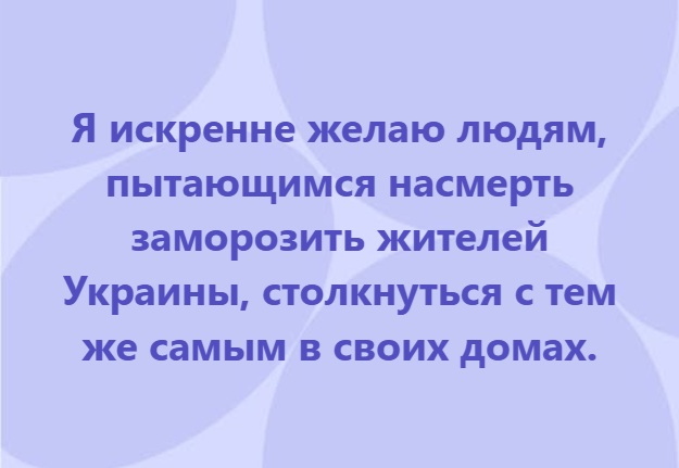 Я искренне желаю людям, пытающимся насмерть заморозить жителей Украины, столкнуться с тем же самым в своих домах.