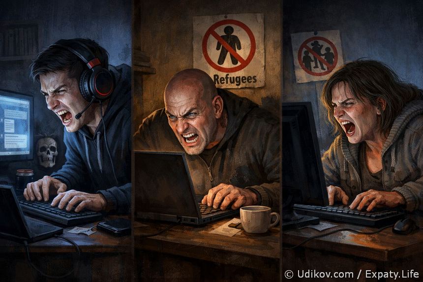 Ибо в их понимании беженец — это патологический неудачник и лжец, человек, не способный вообще ни на что. И уж тем более он в их понимании не может знать законы и уметь их использовать. Хейтерам беженцев и в голову не приходит, что беженцы — это самые обычные люди, в силу определённых обстоятельств вынужденные покинуть собственные страны.